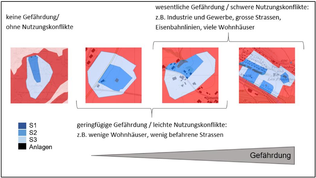 Besonders in dicht besiedelten Gebieten sind in Schutzzonen oftmals Bauten und Anlagen anzutreffen, welche nach der heutigen Gewässerschutzgesetzgebung dort nicht mehr zulässig wären. Auch wenn das nicht automatisch zu einer Verschmutzung des Grundwassers führt, so nimmt doch mit jeder weiteren Baute das Risiko für einen Zwischenfall zu. Nutzungskonflikte müssen deshalb möglichst beseitigt oder in gravierenden Fällen die Fassung gar aufgehoben oder ersetzt werden.