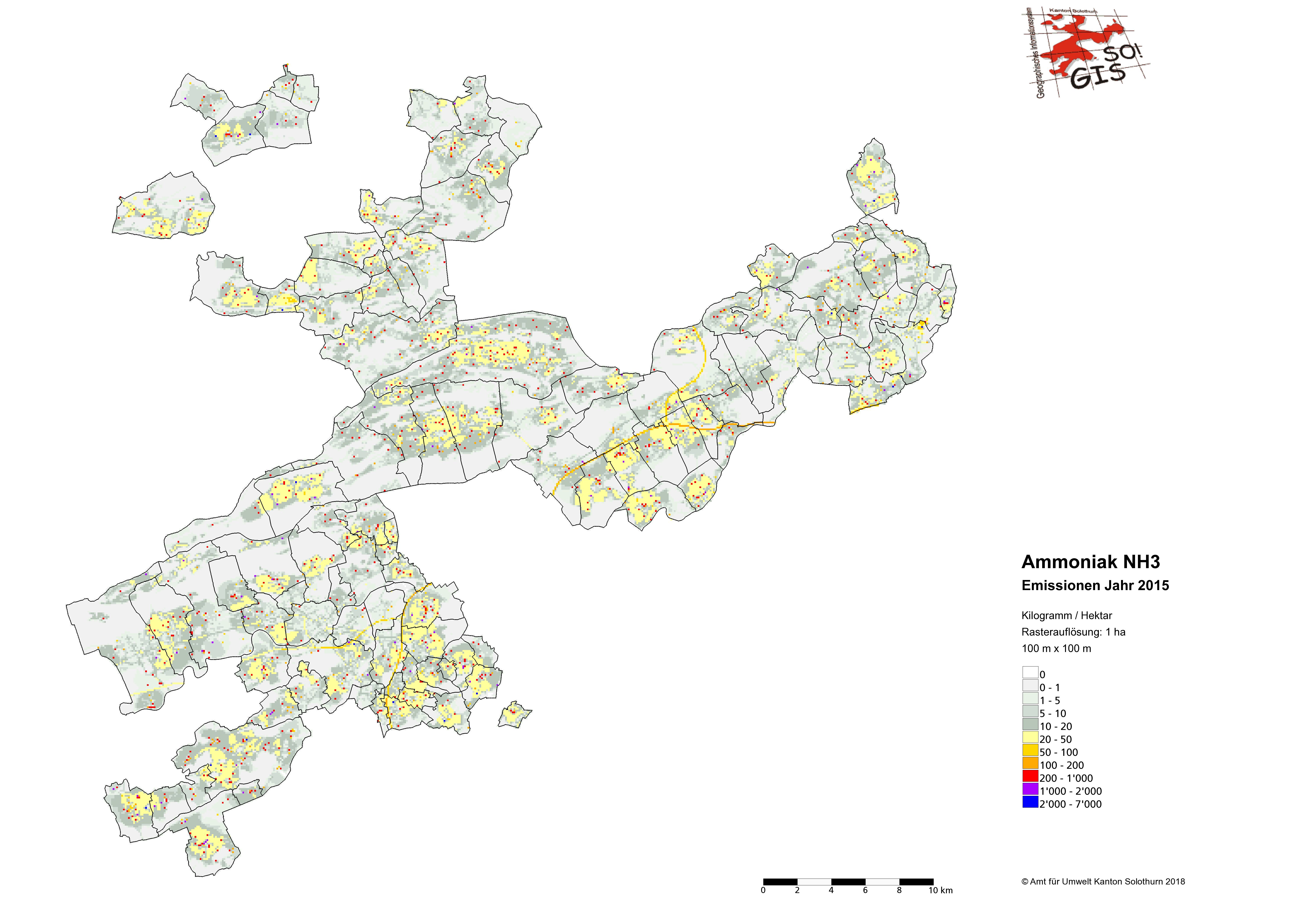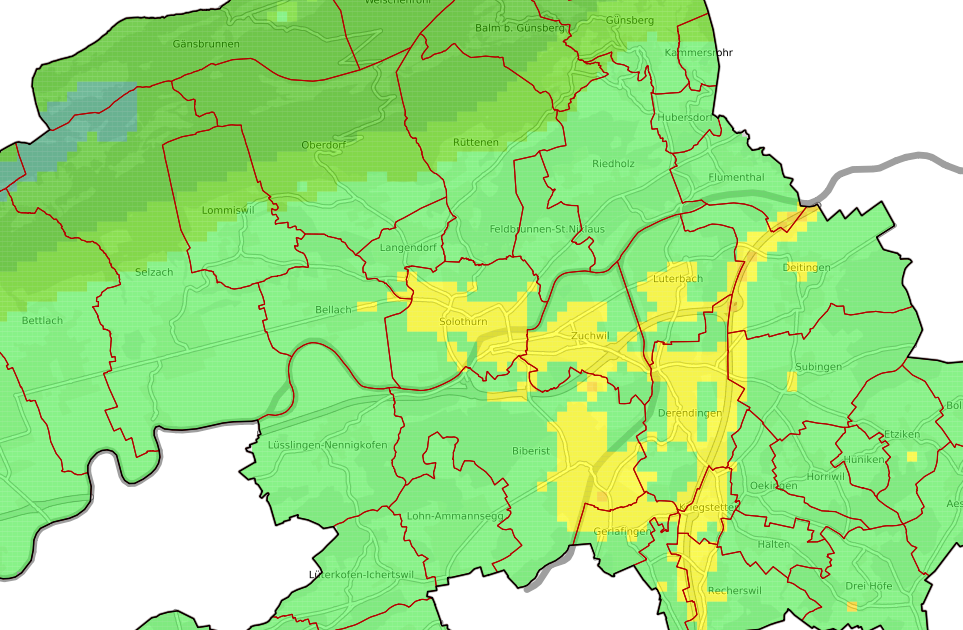 - Mittels Modellen werden Werte für das ganze Kantonsgebiet errechnet und mit den effektiven Messungen kalibriert. Die Karte zeigt Daten für das Jahr 2010; geplante Aktualisierung alle 10 Jahre.