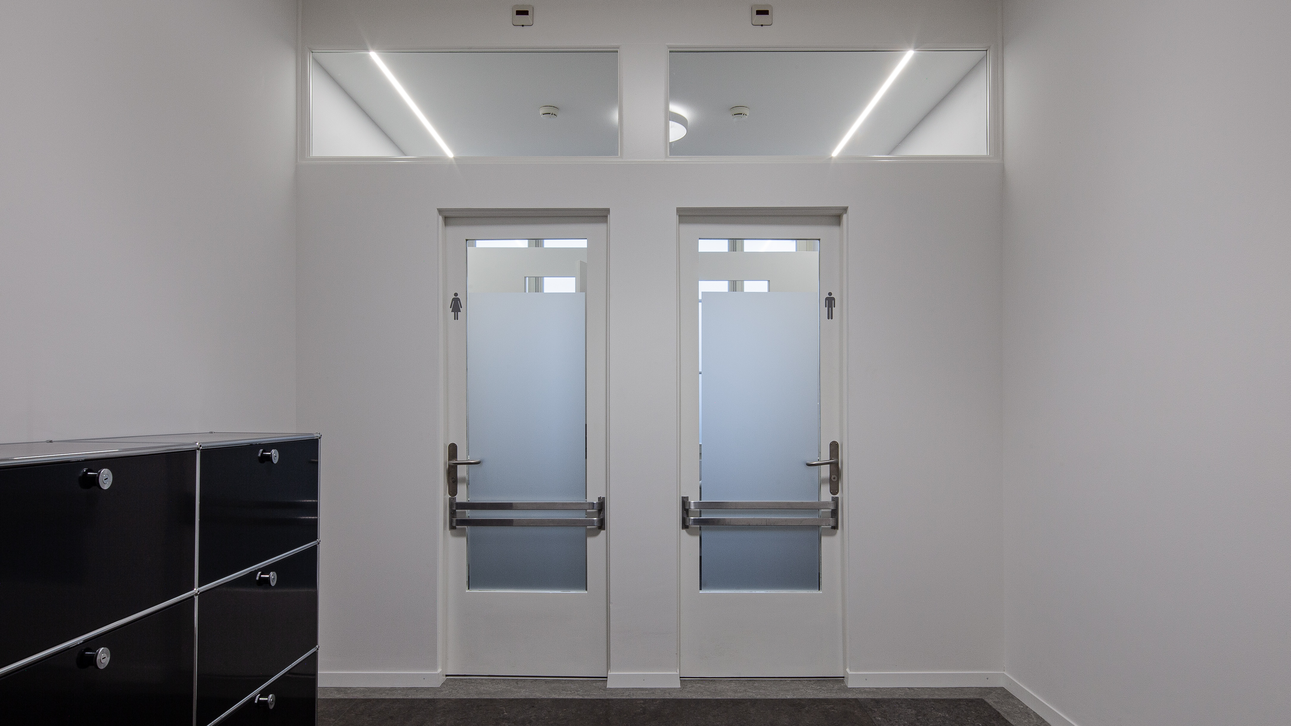Um den Bedürfnissen nach mehr Flexibilität gerecht zu werden, wurden zwei hindernisfreie Nasszellen, die auch den Anforderungen des Gleichstellungsgesetzes genügen, eingebaut. Gleichzeitig wurde die Cafeteria renoviert. Dieser Raum dient den Mitarbeitenden für Pausen und den Klienten des Amtshauses als Warte und Besprechungsraum.