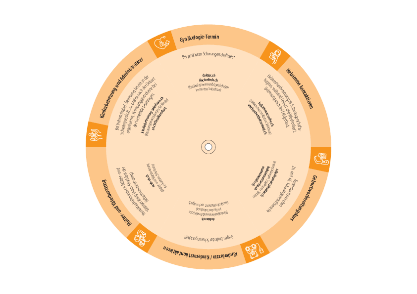 Die Drehscheibe «Familienstart – von der Schwangerschaft bis zum 5. Lebensjahr» kann beim Gesundheitsamt bestellt werden (E-Mail an: praevention@ddi.so.ch). Fachpersonen können sie an werdende Eltern sowie an Eltern von Kindern bis 5 Jahren abgeben.
