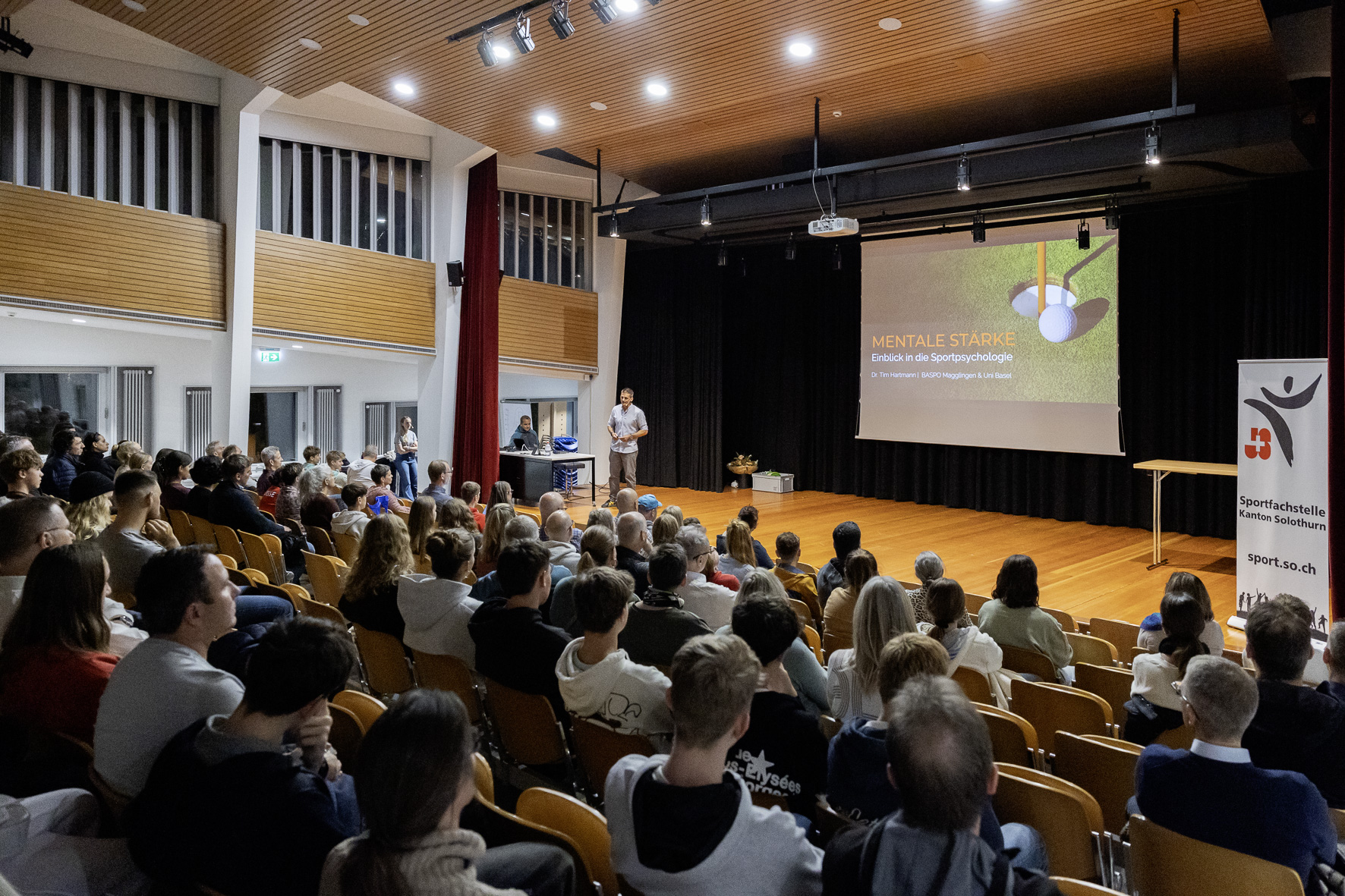 Die eingeladenen Sporttalente aus dem Kanton Solothurn mit einer Swiss Olympic Talent Card National oder Regional sowie ihre Eltern und Trainerinnen und Trainer nutzten die Gelegenheit, zu leistungssportrelevanten Themen wertvolle Inputs für ihre persönliche Leistungsentwicklung und
