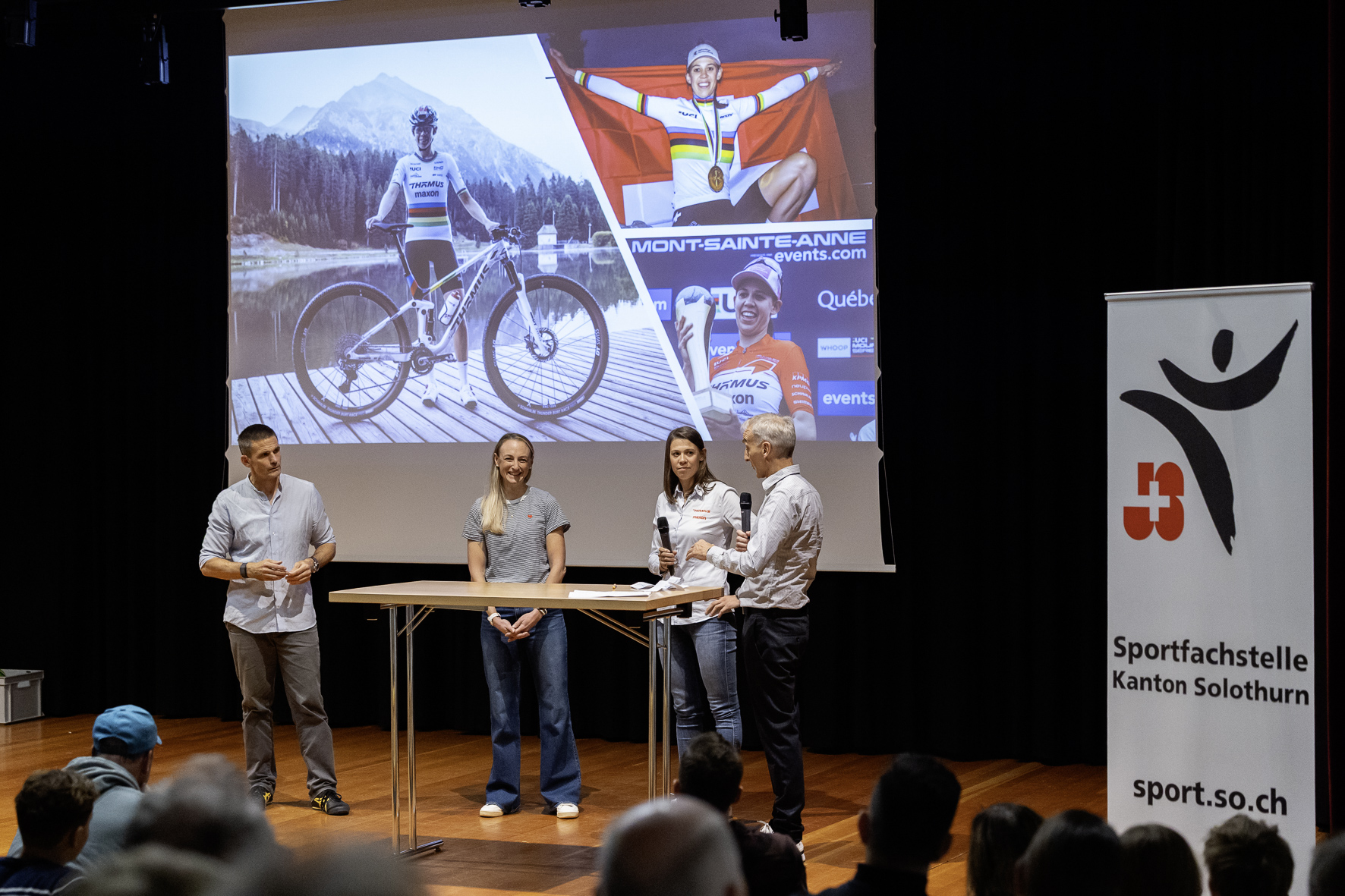 Ein besonderes Highlight war das Podiumsgespräch mit Alessandra Keller und den beiden Referierenden. Die Mountainbike-Weltmeisterin aus Hubersdorf gewährte den anwesenden Nachwuchstalenten authentische Einblicke in ihren Weg an die Weltspitze und teilte ihre persönlichen Erfahrungen aus dem Spitzensport.
