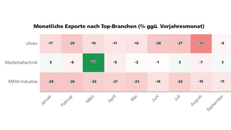 Die Solothurner Exporte sanken im dritten Quartal 2025 deutlich; MEM- und Uhrenindustrie waren stark betroffen, die Medizinaltechnik blieb stabil. Zudem werden die Folgen der US-Zollerhöhungen aufgezeigt.