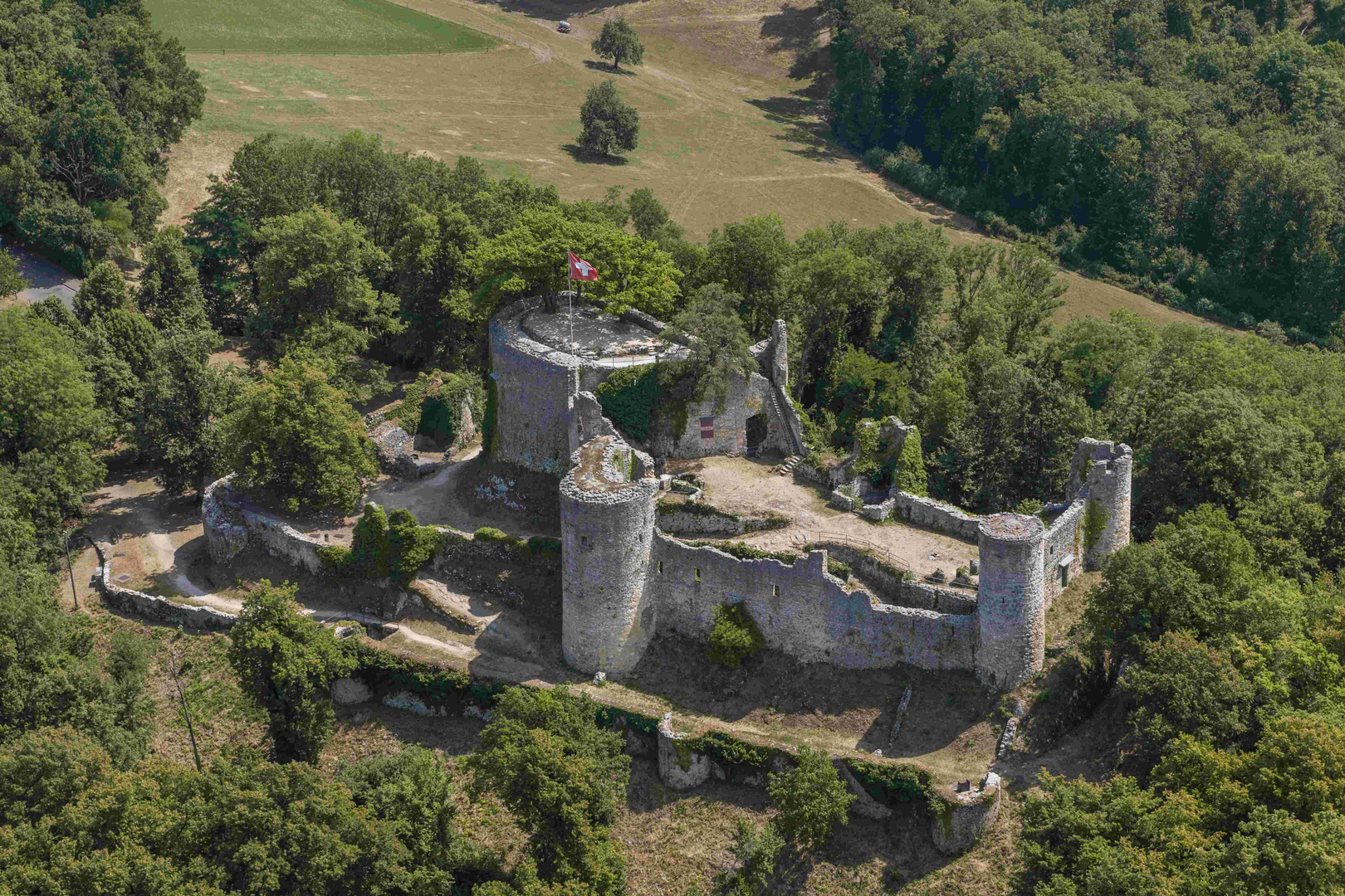 - Die hoch über Olten gelegene Burgruine Frohburg in einer Flugaufnahme von Nordwesten. Bildnachweis: VBS (1 MB, jpg)