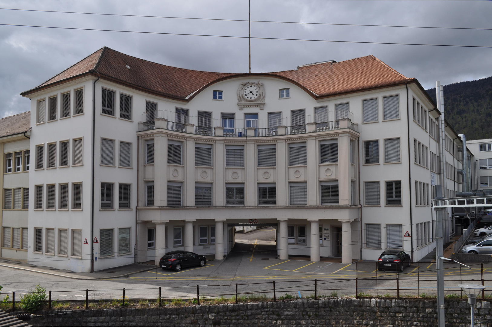 - Der monumentale, 1918/19 errichtete Eingangstrakt der Uhrenfabrik Michel in Grenchen. Bildnachweis: Kantonale Denkmalpflege Solothurn (1 MB, jpg)