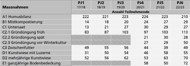 Die humusaufbauenden Massnahmen wurden über die Jahre rege umgesetzt: