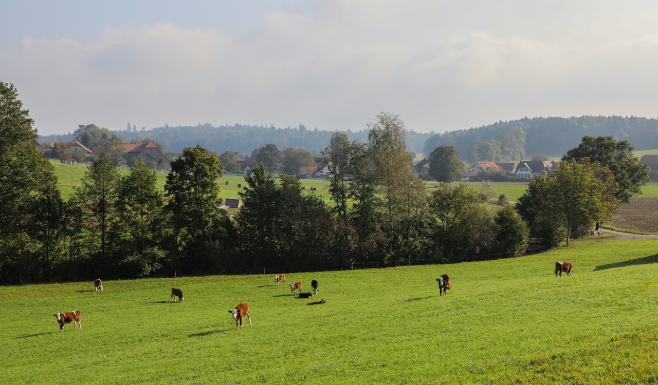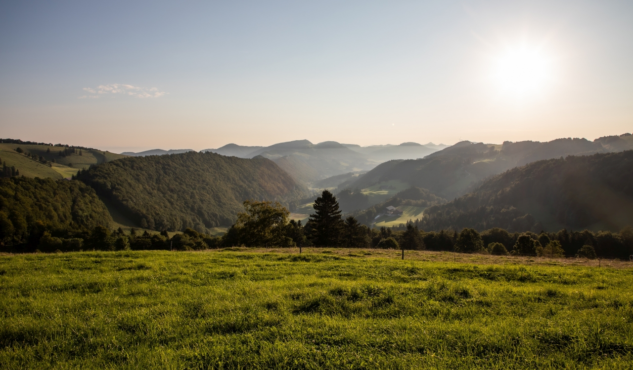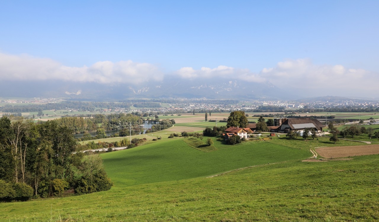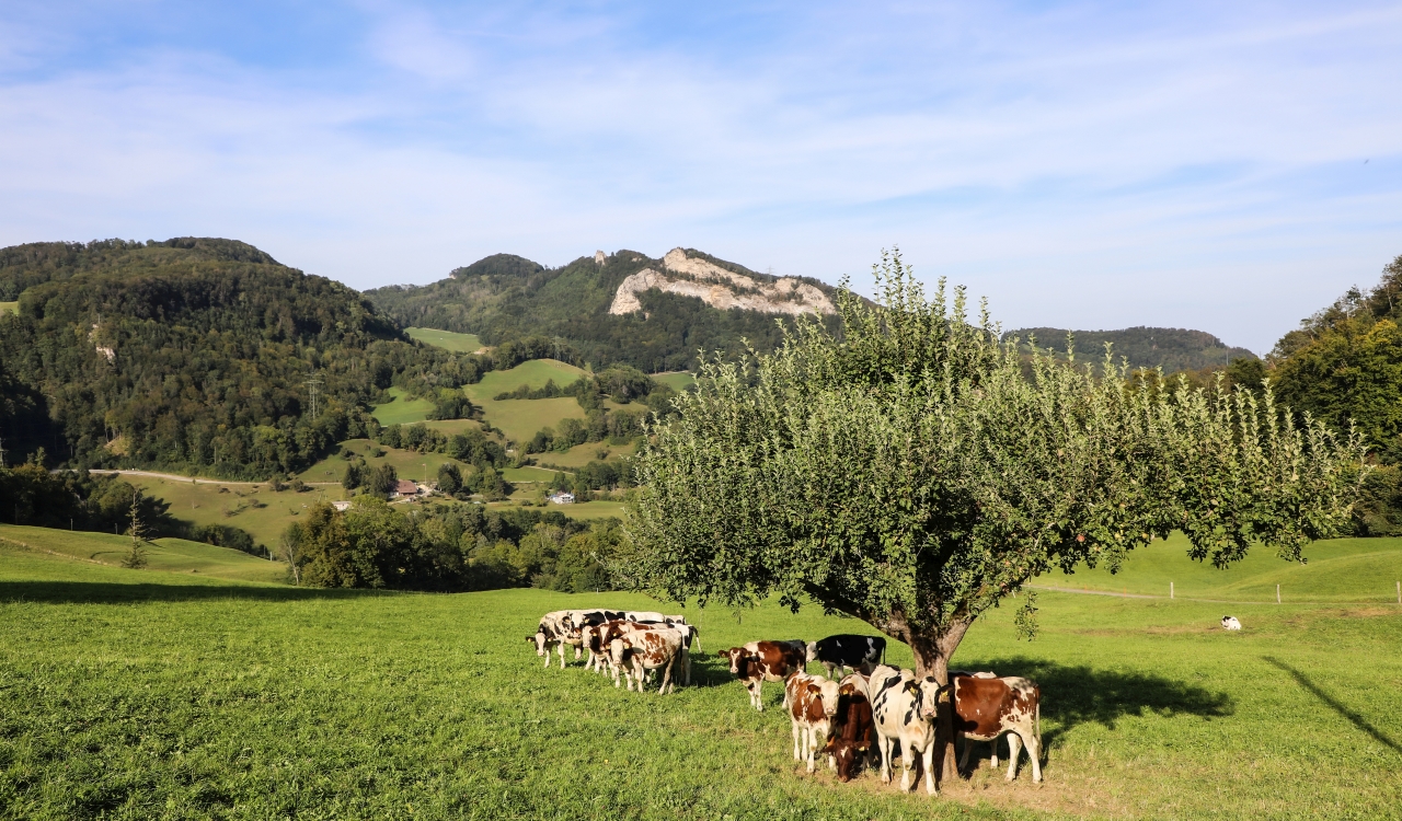 Mitten in der ersten Jurakette des Faltenjuras zeigt sich eine abwechslungsreiche hügelige Landschaft geprägt von Weiden, Bäumen, Hecken und Wäldern. Im Sommer sind häufig Rinder, Pferde oder Schafe zu sehen, die auf den saftigen Wiesen weiden. Sie leisten damit einen wichtigen Beitrag zur Offenhaltung der Landschaft.