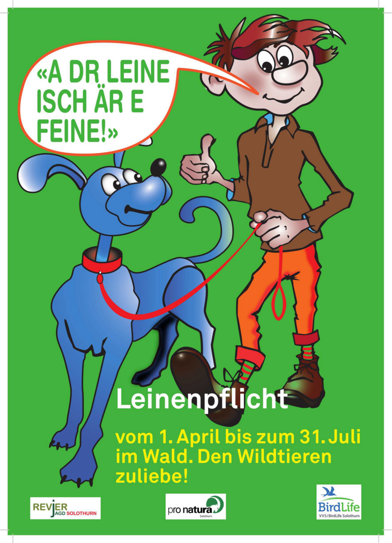 Im Frühling beginnt die Brut- und Setzzeit der einheimischen Wildtiere, eine besonders empfindliche Phase im Jahresverlauf. Viele Vögel brüten und Säugetiere wie Rehe setzen ihren Nachwuchs in dieser Zeit in der freien Natur. Um die Jungtiere und ihre Mütter vor unnötigem Stress und Gefahren zu schützen, gilt im Kanton Solothurn ab dem 1. April bis und mit dem 31. Juli eine generelle Leinenpflicht für Hunde im Wald (§ 4 Abs. 1 lit. a Hundeverordnung).